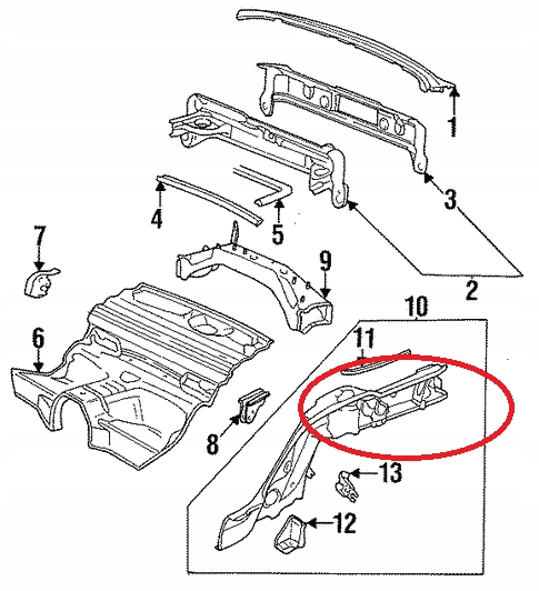Лонжерон ліва задня porsche 911 993