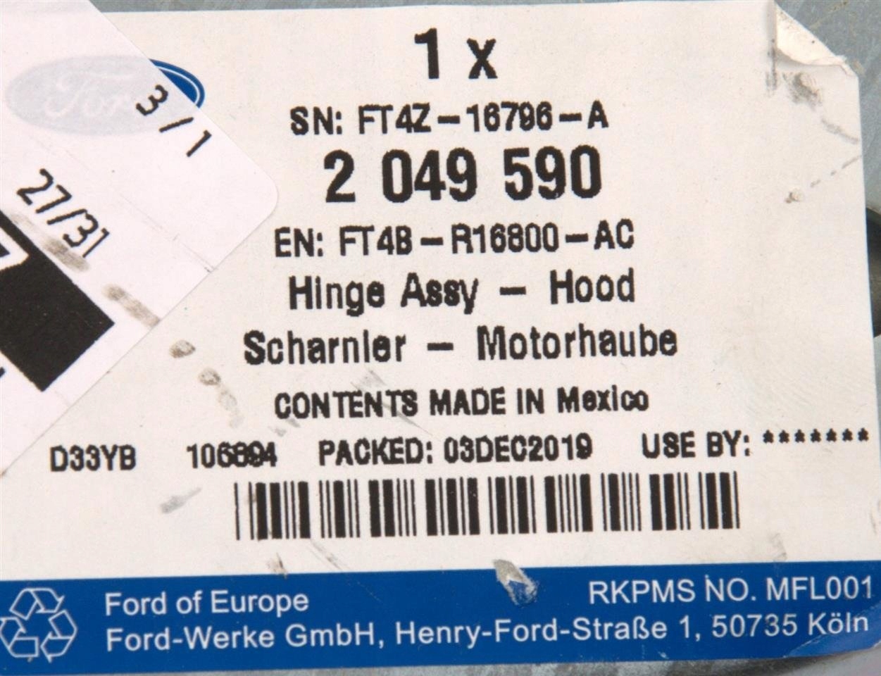 Чи є гарантія на Петля капот правий edge 2015- / 2018- ford оригінальний номер?