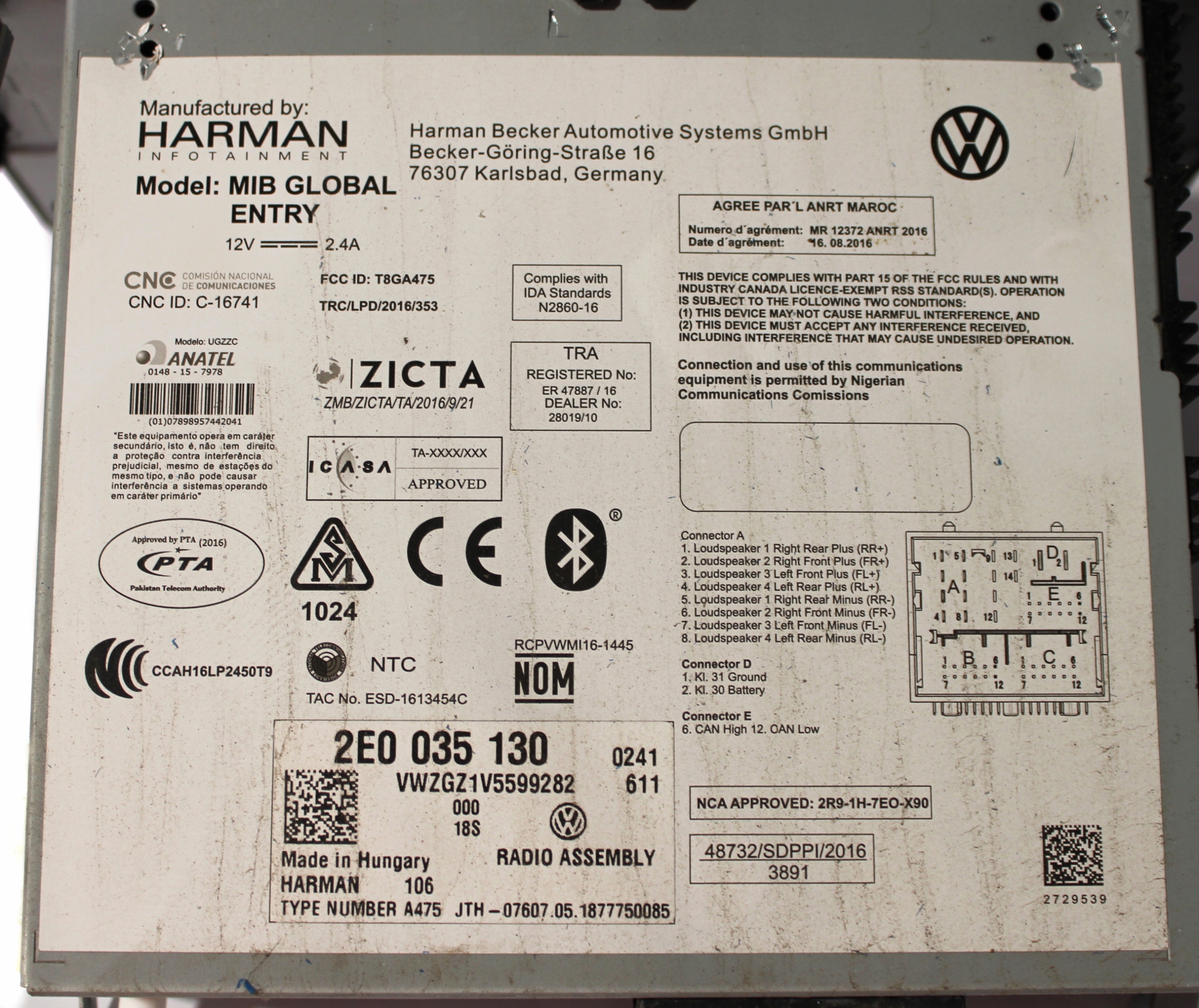Vw crafter ii man tge радіо 2e0035130